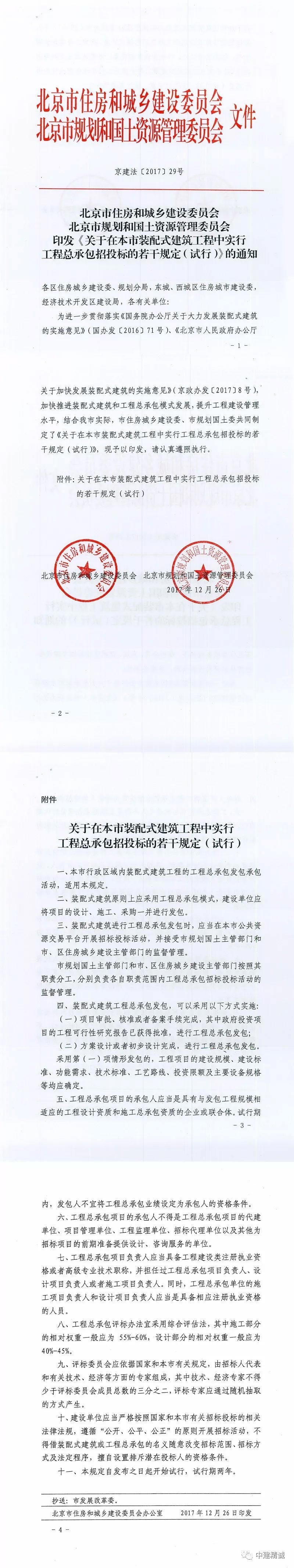 北京市住房和城鄉(xiāng)建設(shè)委員會印發(fā)《關(guān)于關(guān)于在本市裝配式建筑工程中實(shí)行工程總包承包招投標(biāo)的若干規(guī)定(試行)》的通知